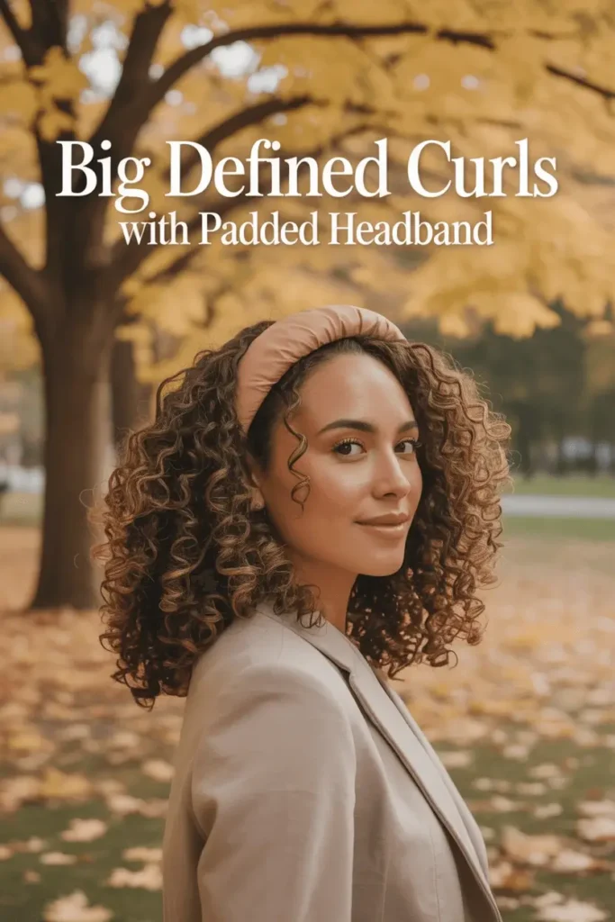 The padded headband paired with big defined curls gives a royal, elegant, and modern look. This popular trend adds height and luxury, making it perfect for fall fashion styling. The padded shape frames the face and brings attention to the curls’ fullness.