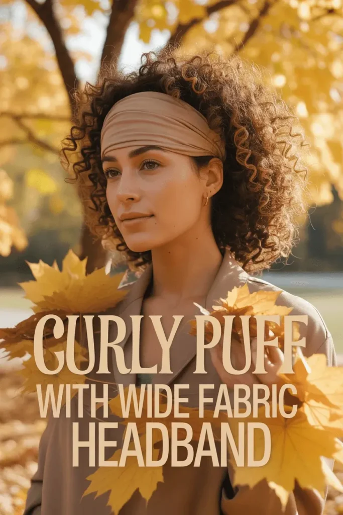 This look is perfect for fall, as the wide band adds a cozy, seasonal feel while complementing textured curls. The puff sits beautifully at the crown of the head, giving your face a natural lift and highlighting your bone structure. Women with thicker curls will especially appreciate how the headband distributes volume evenly.